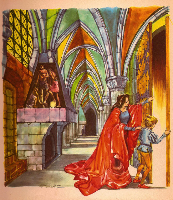 It was then that the washerwoman told her that she had once had twelve brothers, but they had mysteriously gone away. Nobody knew where because the king had wanted to have them killed, and the twelve shirts belonged to the twelve brothers. The little sister was astonished that she had never heard of her twelve brothers, and during the afternoon as the clothes were drying and she was sitting in the meadow, she recalled the words of the washerwoman. After giving considerable thought to what she had heard, she stood up, took the twelve shirts, and went into the forest where her brothers were living.